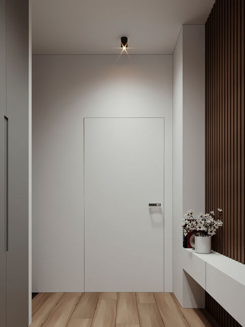 Минимализм во всей своей красе. Простота, гармоничность "приправленная" яркими акцентами, что придает этому проекту особый шарм и стиль.